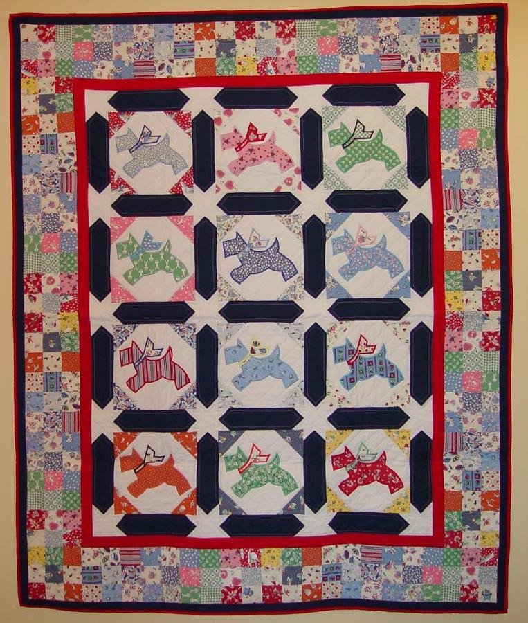 Quiltmomma70 American Scotties Through the Year - The border design I created myself, but the Scotty Dog applique pattern I found in the Aunt Grace book on page 48. I enlarged the pattern and made the bow and collar one piece instead of two.