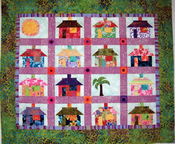 eatonjan Hula Huts - The family loves Hawaii and having lived there for awhile, this quilt took advantage of a collection of Hawaiian print fabrics.