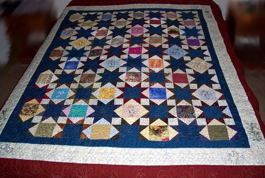 JANBLOCK Charmed Stars - This quilt was made using blocks from my LQS block swap. I added blue fabric to unify the quilt