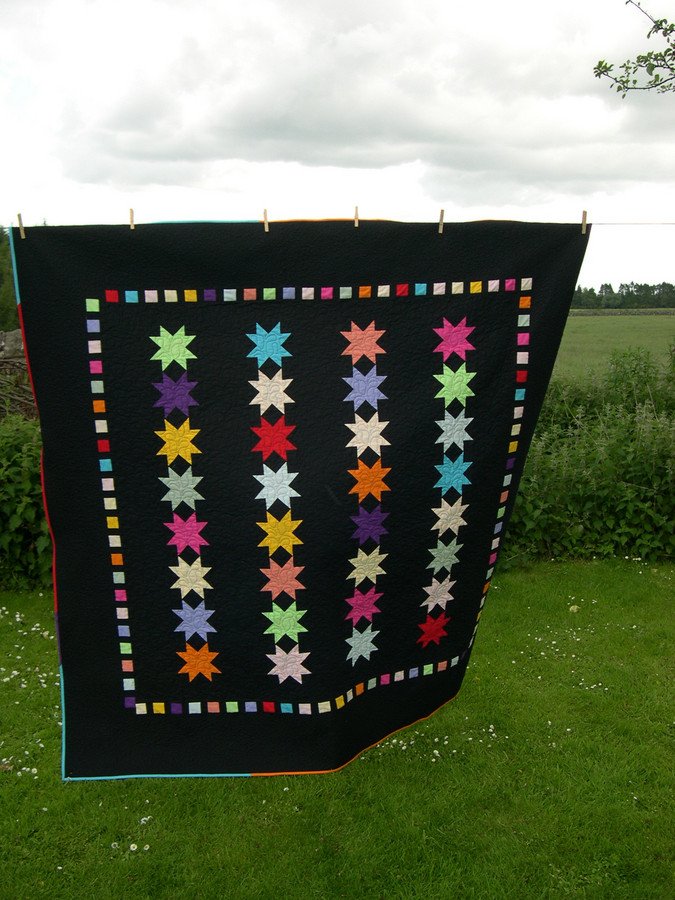 sewlinzi Black Sawtooth Stars - This was the first quilt that I made in a class using after being taught how to cut and piece accuarately. I love Amish Quilts!