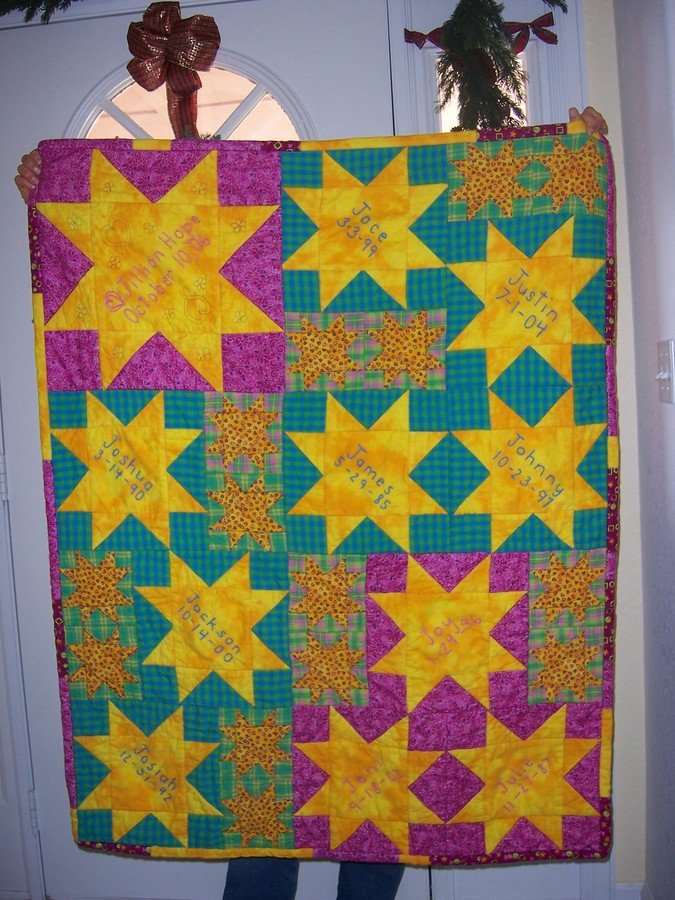 | Design Source - Description | Jillian and her 10 siblings each have a star with their names and birthdates embroidered. |