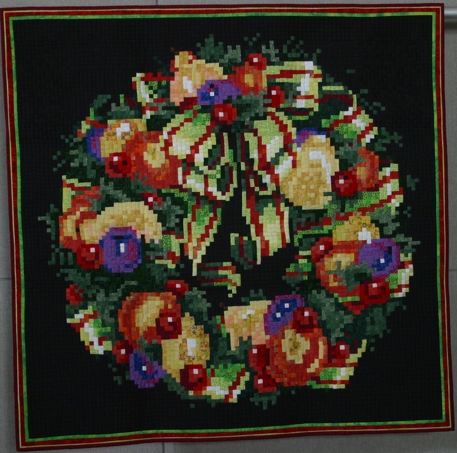MiniGoddess My Bountiful Wreath - These are 3/8" finished squares. I must have been "mad" to make it... and complete it. At least I didn't count the squares. I made this quilt before the easy method of interfacing became known to me. Trust me... use the interfacing!!!