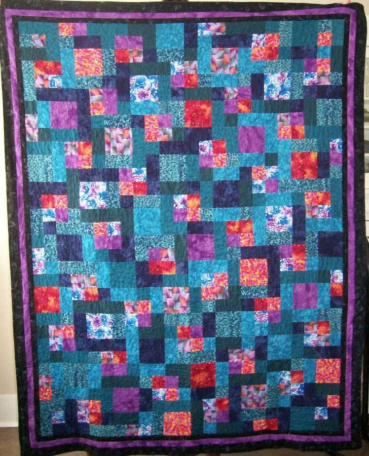 Kc123 Jumble - My first quilt top made all on my own not the best choice of fabrics or colors. It can be quite painful to look at, but it keeps me warm on the couch.