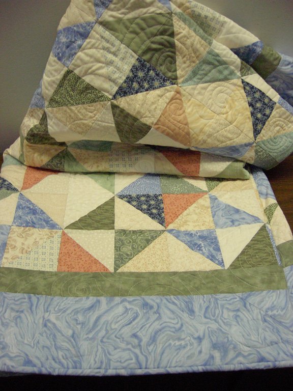 MaxineQuilts Lake Michigan Summer Dreams - Made for my husbands cousins. They have a house on Lake Michigan where we love to vacation each summer. It was made as a thank you for allowing us to stay with them. The colors match the walls and carpet in the bedroom.