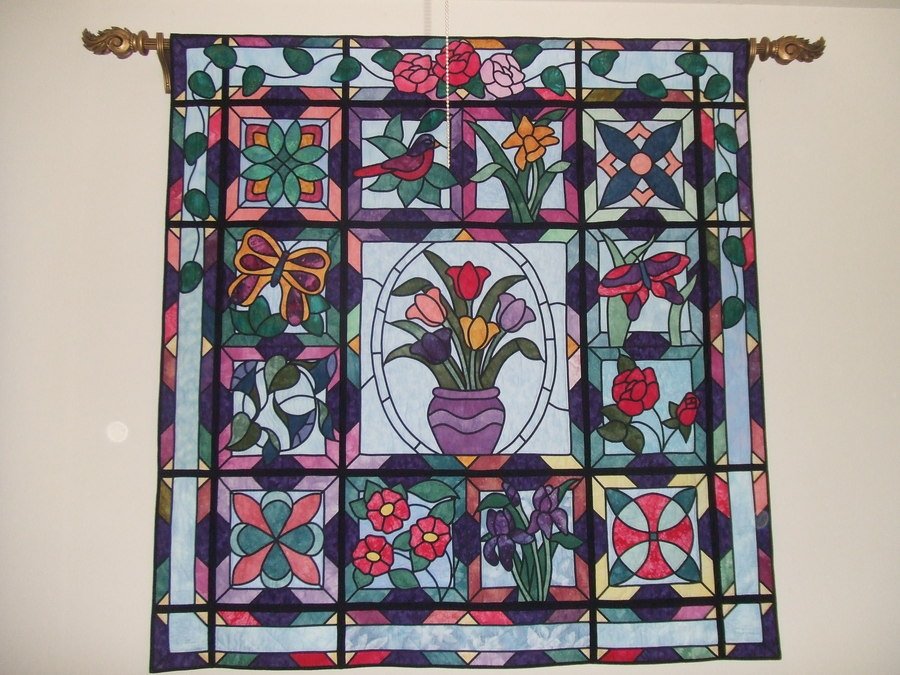 Stipple Stained glass garden - This quilt was made by my mom for me as a weddding gift, all but the daffodil block, I made that one! It is hand appliqued and quilted!!!