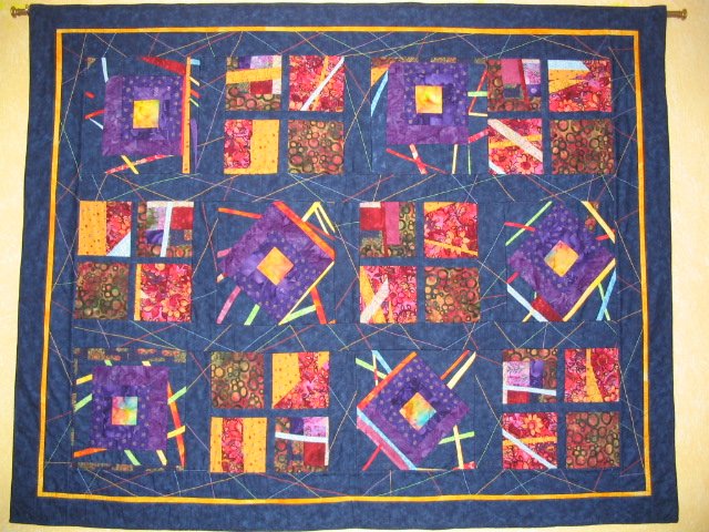 CarolBailey Heaven and Earth - I started quilting classes in October 2006 with Mary Wasley where I learned solid beginning technique, quilting confidence, and the realization that I was not a "by the pattern" person. After a course based on S.Cummings book: "Thinking Outside the Block", again with Mary, I realized if I could "think" or "feel" an idea, I could quilt it. Well, the wonderful world of creative quilting opened up for me - and it is a joy! Roger's quilt hangs on the wall above our bed, and works very well with the art prints we have by J.Miro also in our bedroom. For this reason, I don't know if it would be considered an Art Quilt or an Contemporay Quilt. You decide.