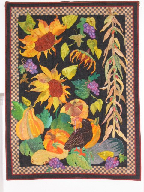 CarolBailey Harvest 1 - I participated in a fabric dying & thread painting class taught by Coreen Zerr of Nanaimo, and the result was "Harvest 1". "Harvest 1" is a wall quit and hangs in our main stairwell. Lately, it seems to be wanting more quilting, so we shall see.