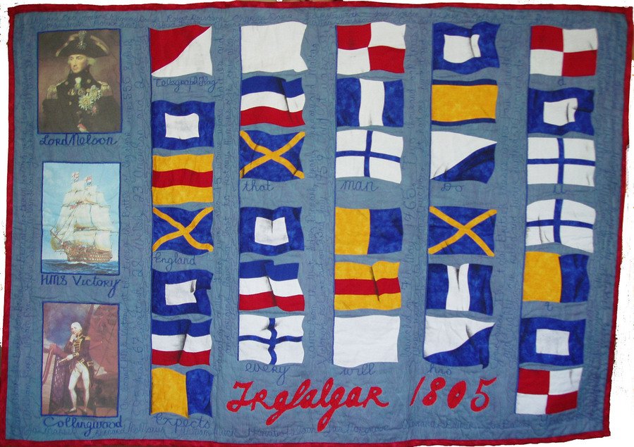 hatshepsut Trafalgar - The battle's heroes: Collingwood, Nelson and his ship, Victory. Flags communicate, 'England expects that every man will do his duty'. Quilted with facts about Victory, her crew and her dead.