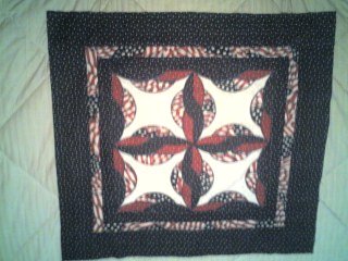 iwuvukeith Patriotic Pedals - I got this pattern in the form of a print out from someone whom I cant remember. I liked the pattern so much that I thought I would try it Reds, Whites, and Blues. After I picked out a White background, the rest was easy to do. I was really surprisedon how it turned out. I am fairly new to quliting, and I have some knowledge of quilting, but I never in my wildest dreams thought that I could make something as pretty as this wallhanging. It only measures 33" x 33". The hardest part I had was putting the batting and the back pieces on. I alway have trouble with that part of quilting.