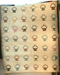 | Design Source - Description | Interesting quilt is a variety of plaid fabrics with off white background. One basket is facing a different way than the rest. An enjoyable quilt to own and look at. It hangs on the wall of my guest room. |