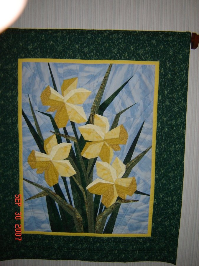 mamamet Daffodils - "Sew and Flip" foundation pieced. I hang it in my entryway in late winter to encourage spring!