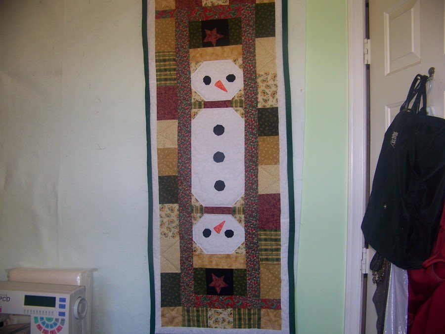 HAPPYCAMPBELL snowman table runner - this is a table runner that I made to donate to a family auction