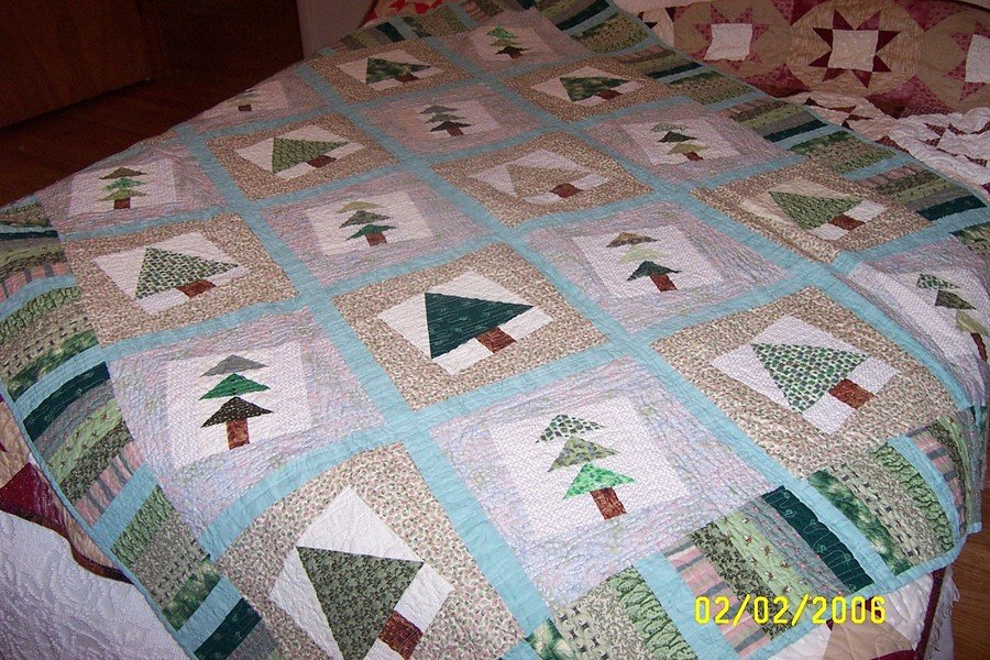 | Design Source - Description | The tree were made with flying geese and large triangles. I drew them and paper piced them |