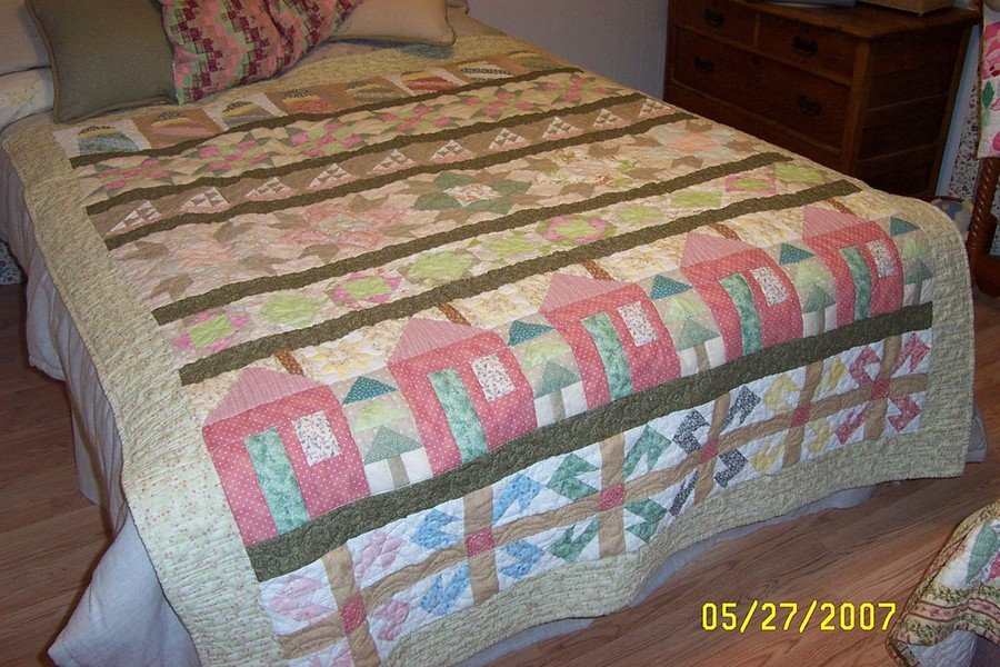 sewjoy Sampler - This is my first attempt at machine quilting a large quilt. This was our guilds BOM for the year. I drew and added the light house row. It is paper pieced