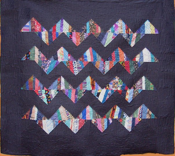 | Design Source - Description | Trying to get rid of some of my strings -- I thought the dark/bright colors on black would be striking. I tried machine quilting a "fingers" design which made a great texture. |
