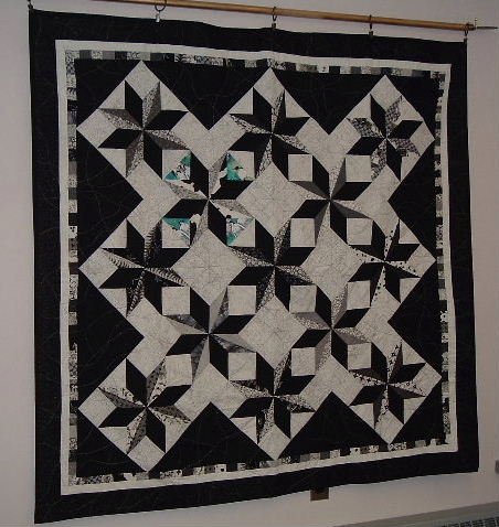 PenguinGG It's Not Always Black & White - Group of internet quilters (Canada, USA, Australia) met for first time in-person at AQS show in Nashville (2000) and met Alex Anderson. Bought fabric and "Simply Stars" book -- and this is my souvenir. One of my first quilts.