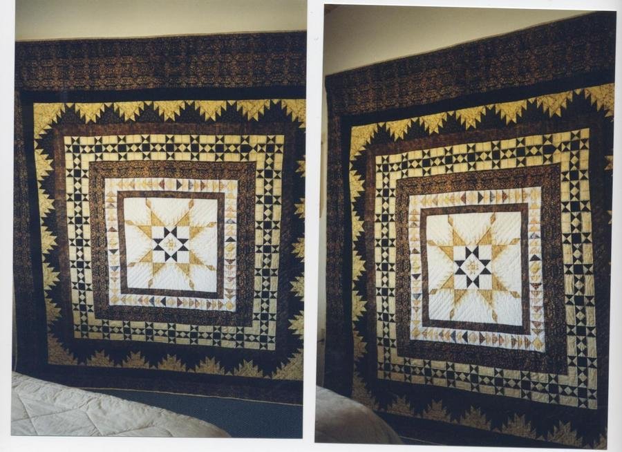 | Design Source - Description | This quilt was made for my older son's wedding. It won best of show at the local county fair a week before the wedding. |