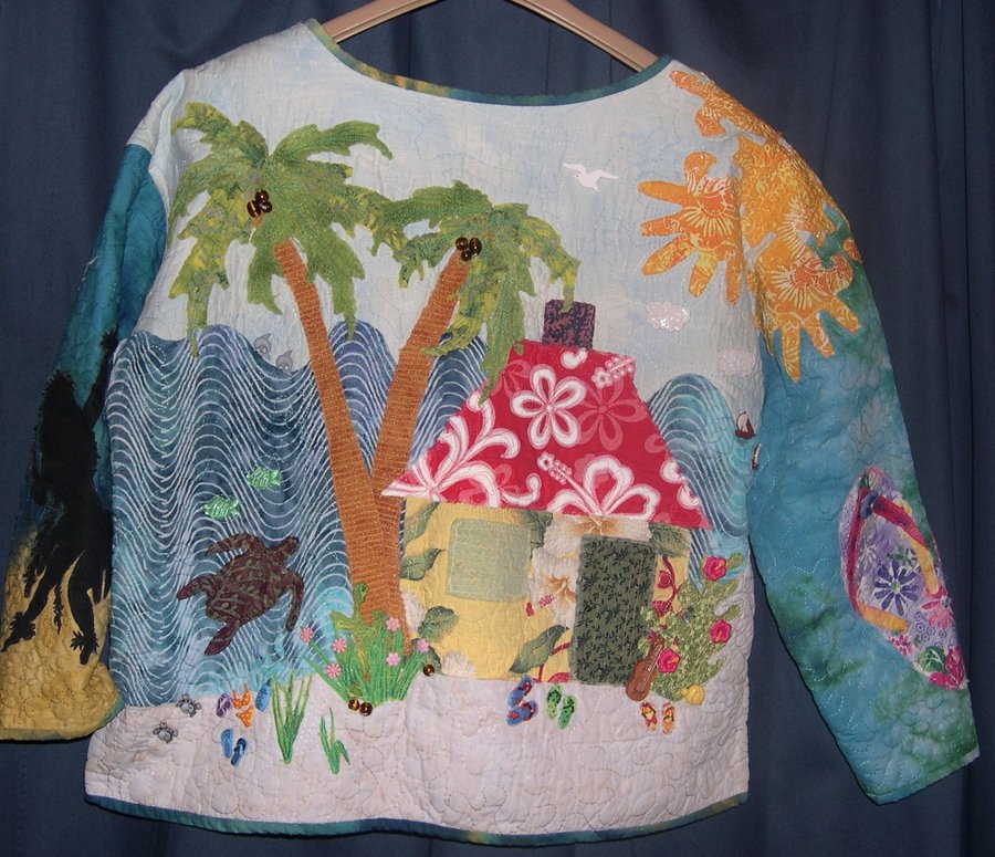 | Design Source - Description | This is the back of my fabric collage jacket. The front features the Napali Coast of Kauai. Kauai is my favorite place in the universe, for sure. |
