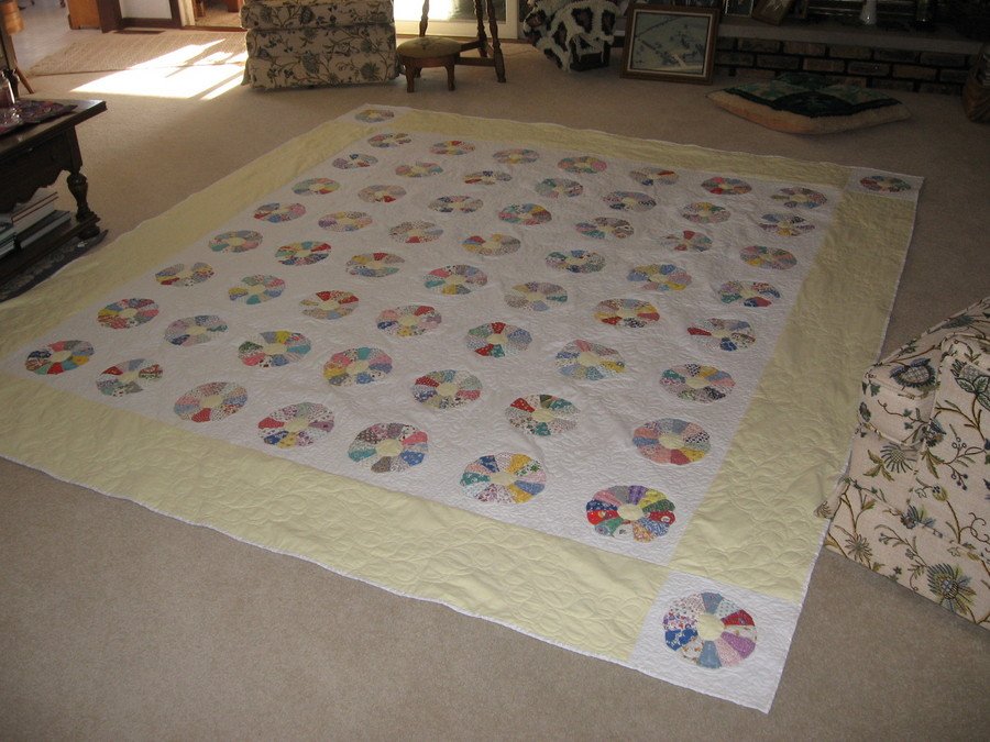 | Design Source - Description | Template made from sandpaper, I still have it, by Grandma Myrt. She started my quilting fever and we worked together making the plates and applquing them to the blocks. |