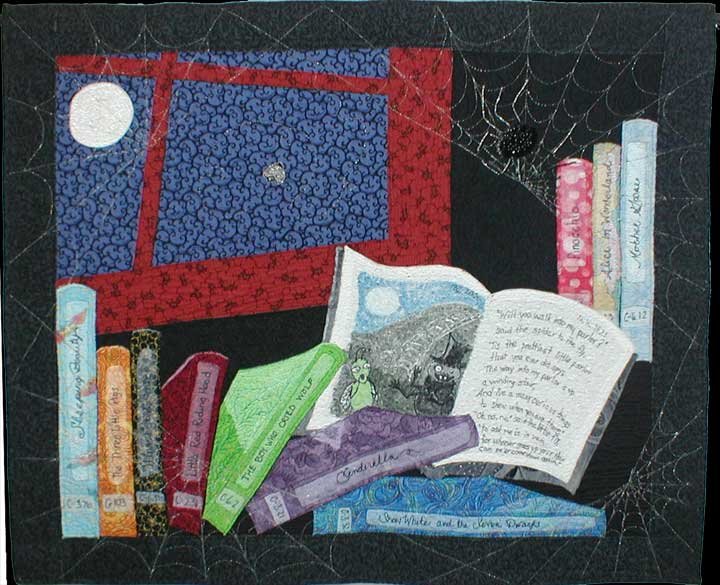 BarbaraZuazua Beware My Little Darlings - This is a story quilt inspired by the poem "The Spider and the Fly", a cautionary childrens tale written by Mary Howitt in 1821. I discovered the illustraed story by Tony DiTerlizzi by accident and was completely drawn in by the eerie illustrations and the dark tale. I wanted to do my own illustration in the form of a quilt.