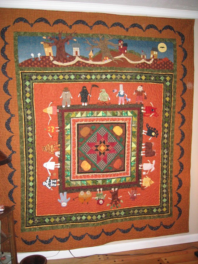Peggybernal Haloloween Friends - This is a Halloween quilt that is pieced, hand appliqued and machine quilted. It was one of the most challanging quilts that I have made, but oh so fun. I love all the little children in their costumes.
