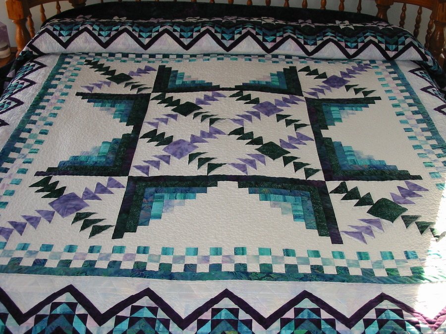 | Design Source - Description | This quilt took awhile because of all the small pieces in the borders, but it was worth it. I love batiks and love these colors. The squares and triangles are 3-D. |