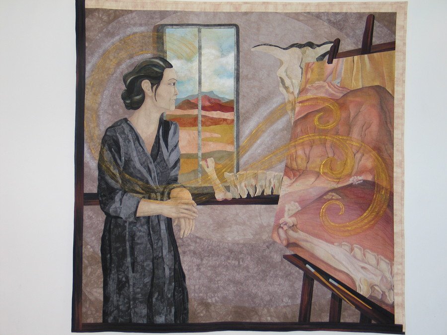 purplecoyote O'Keeffe at Ghost Ranch - In this quilt we share the experience with Georgia O'Keeffe who has just completed one of her paintings...and is standing back to enjoy the beauty of not only her painting ...but the inspiration from which the painting was created.