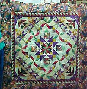 TerryCreativeSew Adventures With Terry - This is a $5.00 Quilt class taught to 80 people who chose their own focus fabric. We used Kona Bay Asian fabrics. The first block sets the tone of the star medallion. Every block after that is a compass or star. The quilters came once a month to see the demo, pick up their new block and then the kit to complete the needed blocks for the round. We are teaching the same quilt again in 2008.