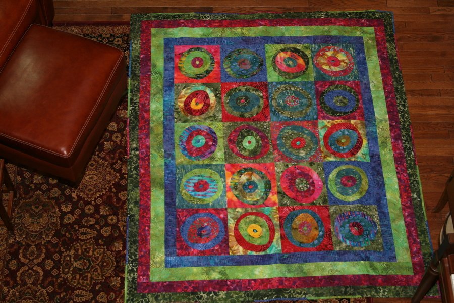 hsvjean Colorado Circles - While we were in Denver this summer, I decided I had to have a project I could work on without my sewing machine. I saw this on the cover of a magazine and decided to try the needle-turn appliqué circles. I had tremendous fun buying the fabric and all of the sewing supplies, and then I found the hand work quite satisfying. After we got home to Alabama, I finished the quilt on my trusty Bernina. I don't think I've ever had as much fun making a quilt.