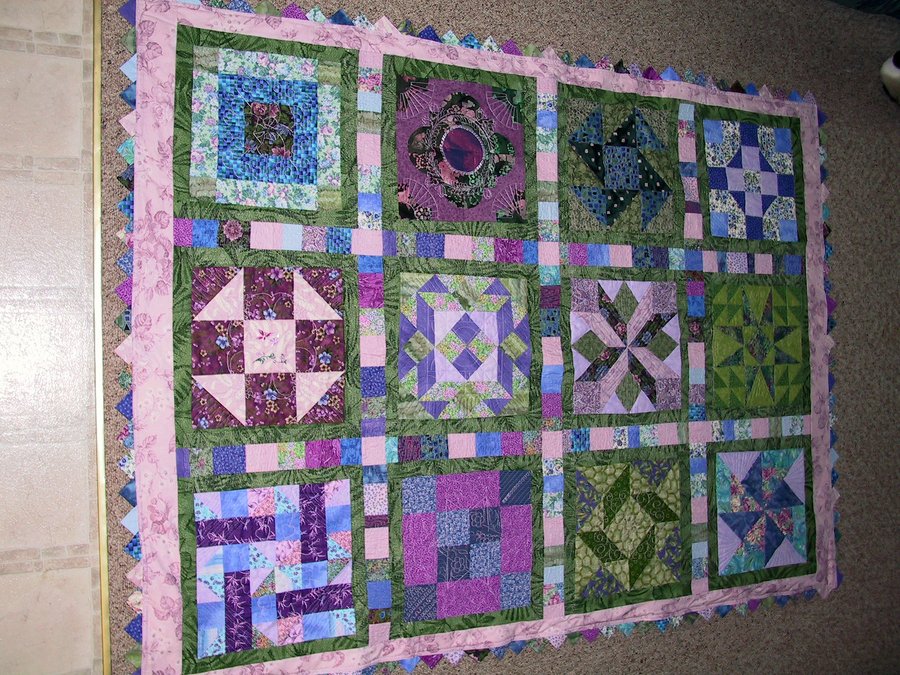 Strwberry Quilting Across the Miles - The blocks were made in duplicates by my Mom and myself. We would then keep one and mail the other to each other. After 6 blocks each, we would complete our individual quilt however we wished. This is how I put mine together. BTW--Mom is in PA and I'm in MN, hence the reason for the title "Quilting Across the Miles".