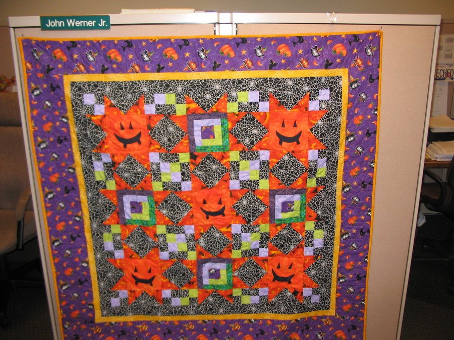 jwerner001 Pumpkin Patch - Log Cabin Blocks and Fused Machine Applique. All fabrics are from JoAnns (substituted for pattern fabric list). Norman Suhr Machine Quilted this for me and put on the binding.