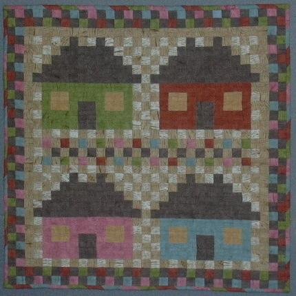 Charlotte Wooden Houses - Inspired by traditional house patterns and Robert Kaufman Home Improvement fabric line. Entered in the Robert Kaufman 2007 Miniature Contest and I’m so happy to be included in the touring collection with a stop in Houston!!! 961 1/2" squares quilted with silk thread. Back is one large pieced house.