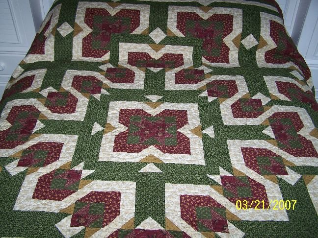 | Design Source - Description | I knew I had to make this quilt for my son-in-law and his fiance's wedding. It was easy to make and I enjoyed doing it after two double wedding ring quilts for 2 of my children. |