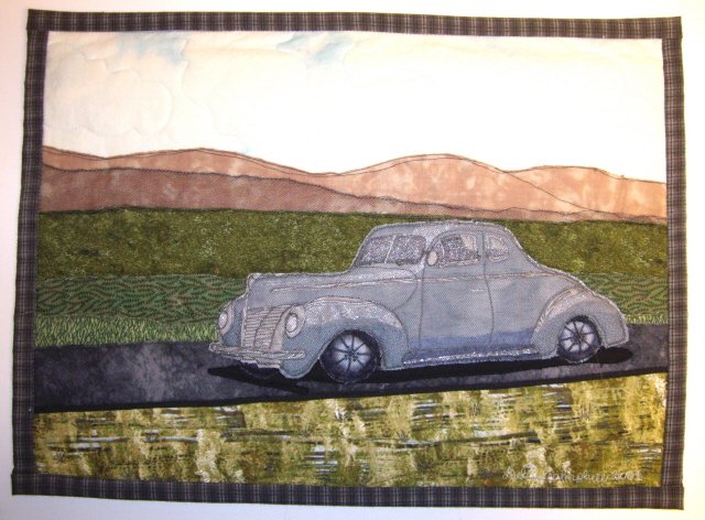 | Design Source - Description | This is my husband's '40 Ford Deluxe Coupe out for a cruise. Free-motion, raw edge applique. |