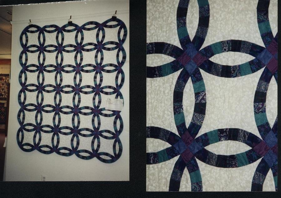 luvstakwilt Silver Anniversary Double Wedding Ring - My best friend Sharon and her husband were celebrating their 25th anniversary and I saw this fabric. It has silver mettalic in some of the fabrics. When I saw the fabrics I knew I just had to make this challenging quilt. It was a fabulous winter project that worked its way right up to summer.