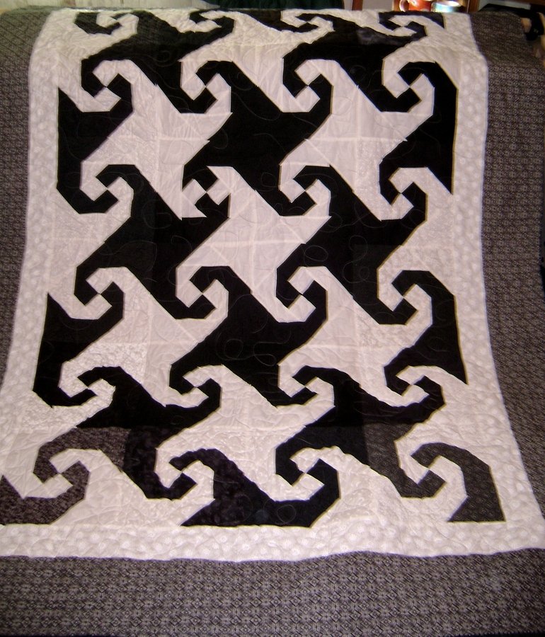 | Design Source - Description | Black and White Snails Trail blocks. Quilted with black vairgated thread. |
