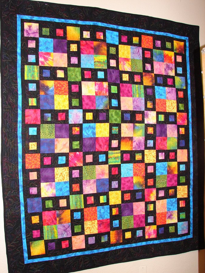 dlbonnett Mad Dash - I saw this pattern and fell in love with it and with the thought of using some of my stash of batiks! I used the tropical leaf design from the batik backing fabric in a bright varigated rayon thread matching the top's colors for my quilting design. It is also on display at a wonderful local quilt/fabric shop.