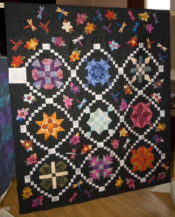Dragonlady Moondance - Found this on internet and fell in love with it. It is designed by Beth Ferrier from Applewood Farm Publications. It was a block of the month and took me over 2 years to complete. My first attempt at making a full size quilt with free machine quilting and I still love it.
