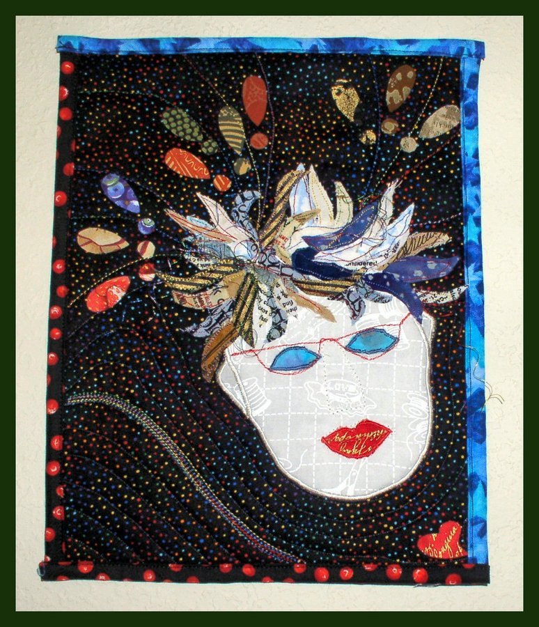 sstephen Self-Portrait - This self-portrait was a response to a challenge in Quilting Arts magazine, based on an article by Yvonne Porcella; it truly was a challenge, forcing me outside of my "comfort zone," a place where I plan to be more and more often.