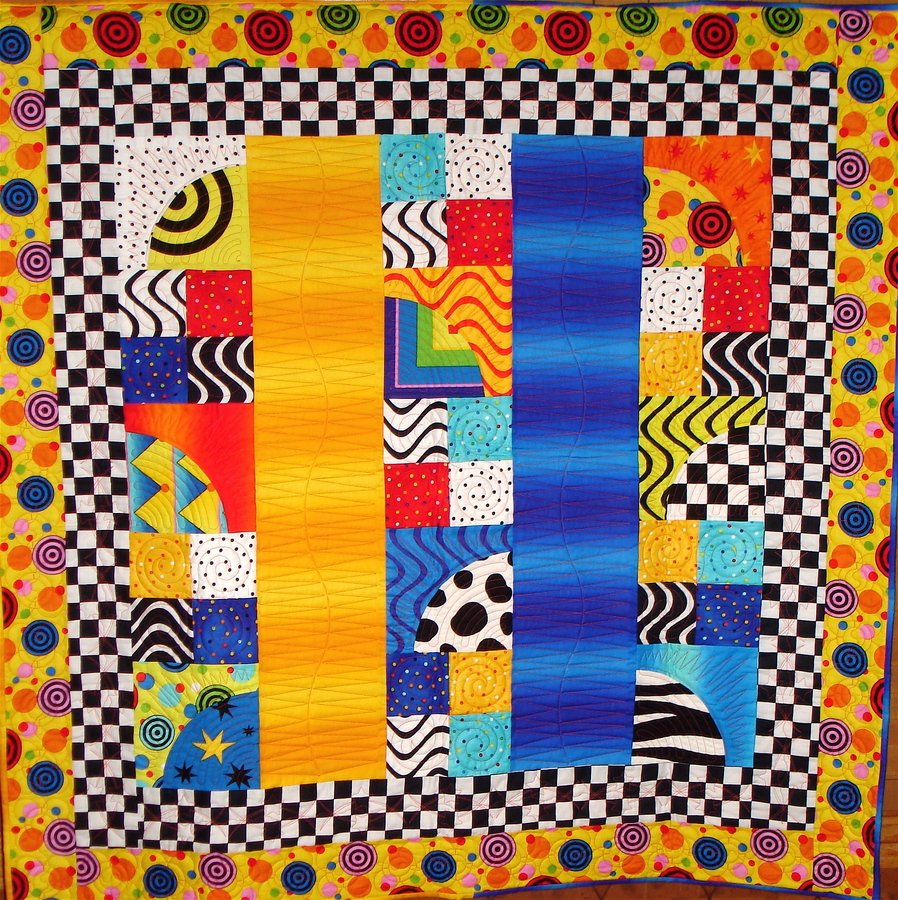Linda4Blk Thoroughly Modern Genius! - I made this 49 inch square quilt to showcase part of my fabric collection, "Grammie & Mimi's Baby Geniuses!" by Benartex. All fabrics are boldly graphic for art lovers! A mostly pre-cut kit is available on my web site, and includes all fabrics for top, backing, binding and the pattern.