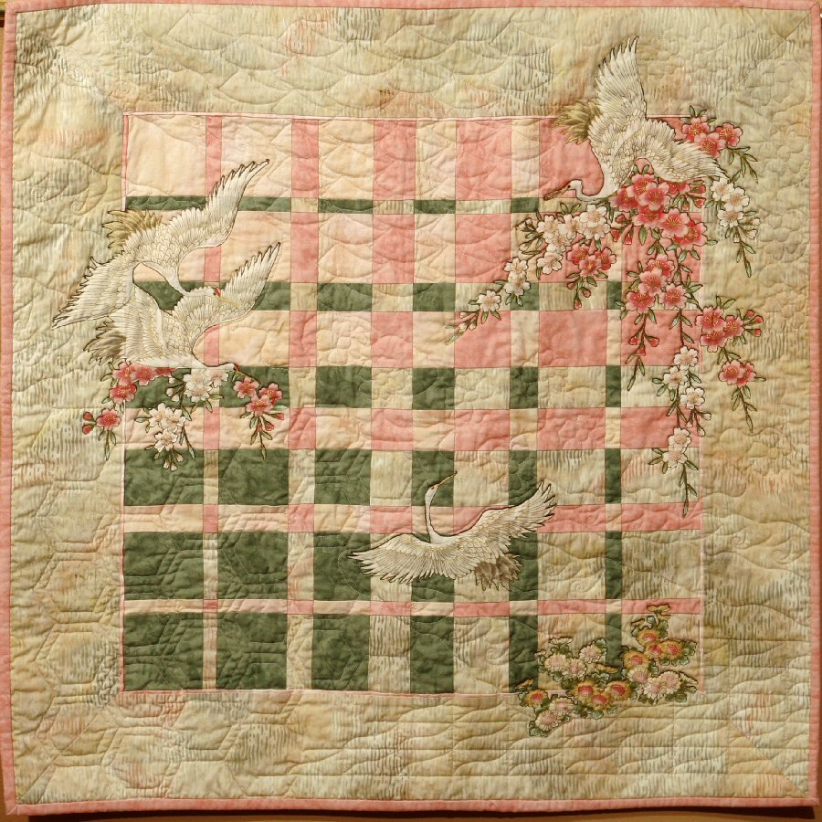 | Design Source - Description | Crane fabric was fussy cut and appliqued over a convergence layout. |