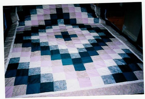 This quilt was the very first quilt I had ever made. It is also the quilt that made me fall in love with quilting. It was a challange and boy did I love it. I have not stopped quilting since. |