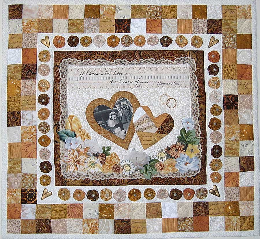 JustImagineDesigns Wedding Remembrance Quilt - Romantic quilt design to celebrate a special anniversary or wedding. The verse says "If I know what love is, it is because of you" by Hermann Hesse.