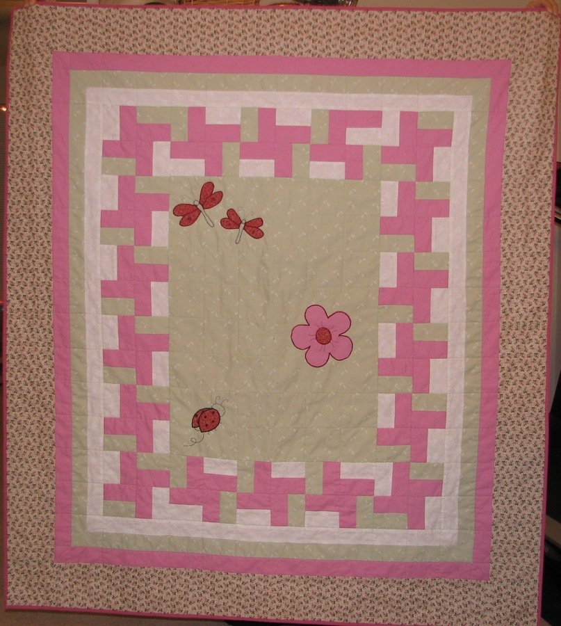 | Design Source - Description | Designed using EQ6, using Kidsline Ladybug bedding as the basis for the appliques and colors. Made for my cousin's new baby. |
