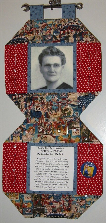 cekewish My Grandmother, My Rosie - This was a quick project to start off a semester in Karen's class. It was supposed to be placemats, but I decided to make a wall hanging instead. The fabric was for a Rosie the Riveter Challenge for Bayside Quilting. The quilt hung in their shop in 2006.