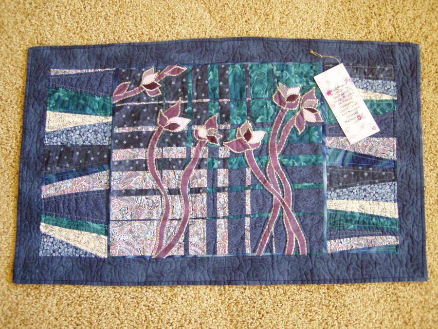 kvail82401 None - In my beginning quilting days, I saw Ricky Tims on Simply Quilts. This is an adaptation from his Convergence Quilts book. A friend asked me to make something for a charity auction, which I did. This is the result. I thought it was awful, but someone thought it was worth $45.00 at the auction. I do not know who bought the quilt, so I do not know its current situation.