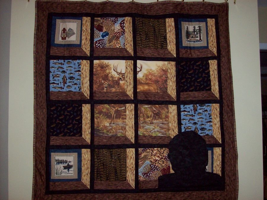 scubber1954 90th Reflection - For our Dad's 90th birthday, my sister, Johanne, made this. The silhouette is from a photo of my Dad that she used in a memory quilt. He loves deer and the outdoors so this seemed perfect. She used a silhouette because he has Alzheimer's and he is a shadow of his former self.