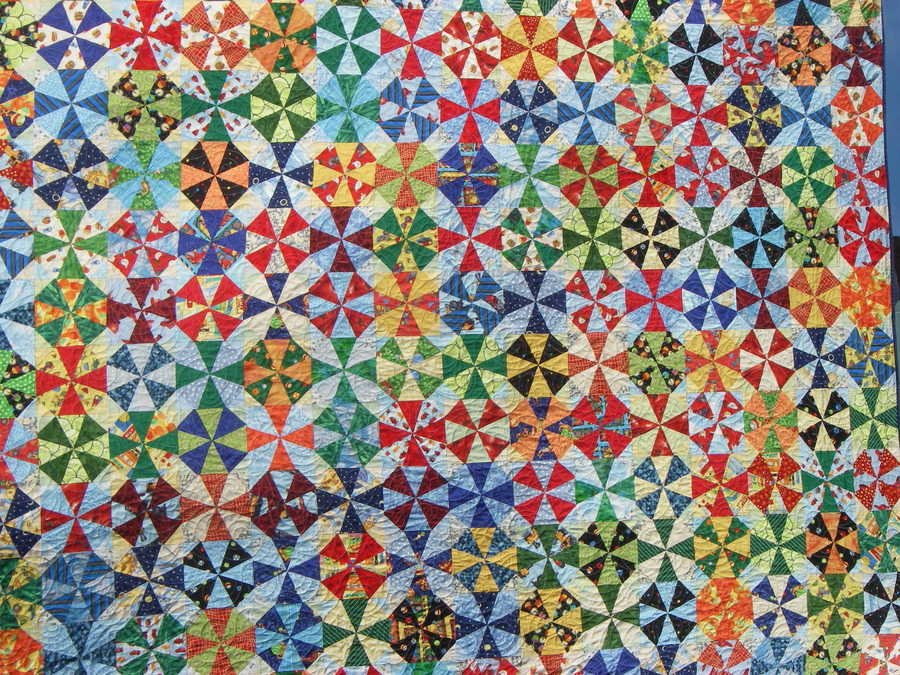 kmclaugh Adam's quilt - Wanted something bright and colorful for my little one's "big boy" bed. Set a goal to learn how to match points -- and got a lot of practice along the way!