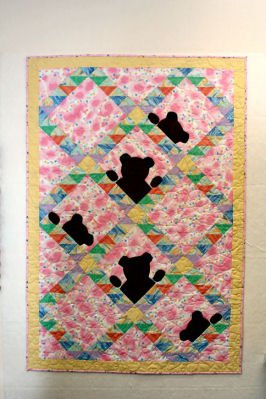 LineDancer Peek-A-Boo Bears - My first experience doing applique and hand embroidery. The bears were so cute that I just had to make the quilt. The quilt was exhibited in the 2006 Folsom Quilt & Fiber Guild Quilt Show, February 2006. It was judged and I received an Honorable Mention award.