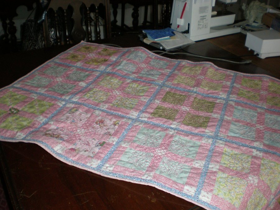 k2designs Never Too Late - This is a baby gift for a friend. Grace was born in March, 2006. The quilt was finally finished in March 2007 for her 1st birthday. I've been told that as long as the baby has not entered 1st grade it's "Never Too Late"....